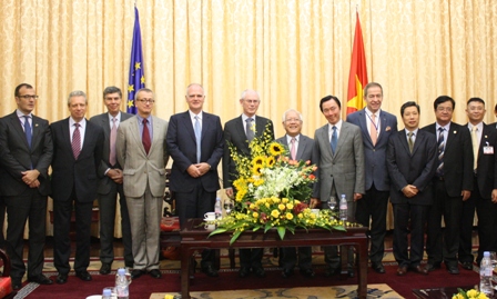 Tại buổi tiếp, Chủ tịch UBND TPHCM Lê Hoàng Quân đã bày tỏ vui mừng khi đón Chủ tịch EU đến thăm và tìm hiểu tình hình kinh tế xã hội của thành phố. Ông khẳng định sự tin tưởng trước mối quan hệ tốt đẹp giữa Việt Nam và Liên minh Châu Âu đang ngày càng phát triển với những bước tiến mạnh mẽ và cụ thể trong các lĩnh vực kinh tế - chính trị - xã hội. Trong đó, việc kí kết “Hiệp định Đối tác và Hợp tác toàn diện” càng góp phần thúc đẩy mạnh mẽ quan hệ Việt Nam – EU lên tầm cao mới. Ông Lê Hoàng Quân phấn khởi trước kết quả kim ngạch thương mại TPHCM – EU năm 2012 tăng rõ rệt với kim ngạch xuất khẩu đạt 1,5 tỉ USD và nhập khẩu đạt 2 tỉ USD. Tại TPHCM hiện nay có 450 văn phòng đại diện của các công ty Châu Âu và 452 dự án do các doanh nghiệp Châu Âu đầu tư với tổng số vốn lên đến 3 tỉ USD. Số lượng công dân đến từ Châu Âu đang sinh sống và làm việc tại TPHCM chiếm tỉ lệ cao trong cộng đồng người nước ngoài tại TPHCM. Ông đánh giá cao sự đóng góp của các doanh nghiệp Châu Âu vào sự phát triển của thành phố không chỉ trong lĩnh vực kinh doanh mà còn trong các hoạt động an sinh xã hội, từ thiện, bảo vệ môi trường… Ông Lê Hoàng Quân còn cho biết, các đất nước tại Châu Âu là điểm đến để giao lưu, học tập và làm việc của của nhiều du học sinh từ TPHCM – qua đó thấy rằng giáo dục cũng chính là một cầu nối quan trọng trong sự gắn kết giữa TPHCM - EU. Trong tương lai, ông hi vọng TPHCM sẽ tiếp tục là lựa chọn của nhiều doanh nghiệp Châu Âu và TPHCM sẽ luôn tạo mọi điều kiện thuận lợi để hỗ trợ các doanh nghiệp đầu tư và làm việc tại thành phố.